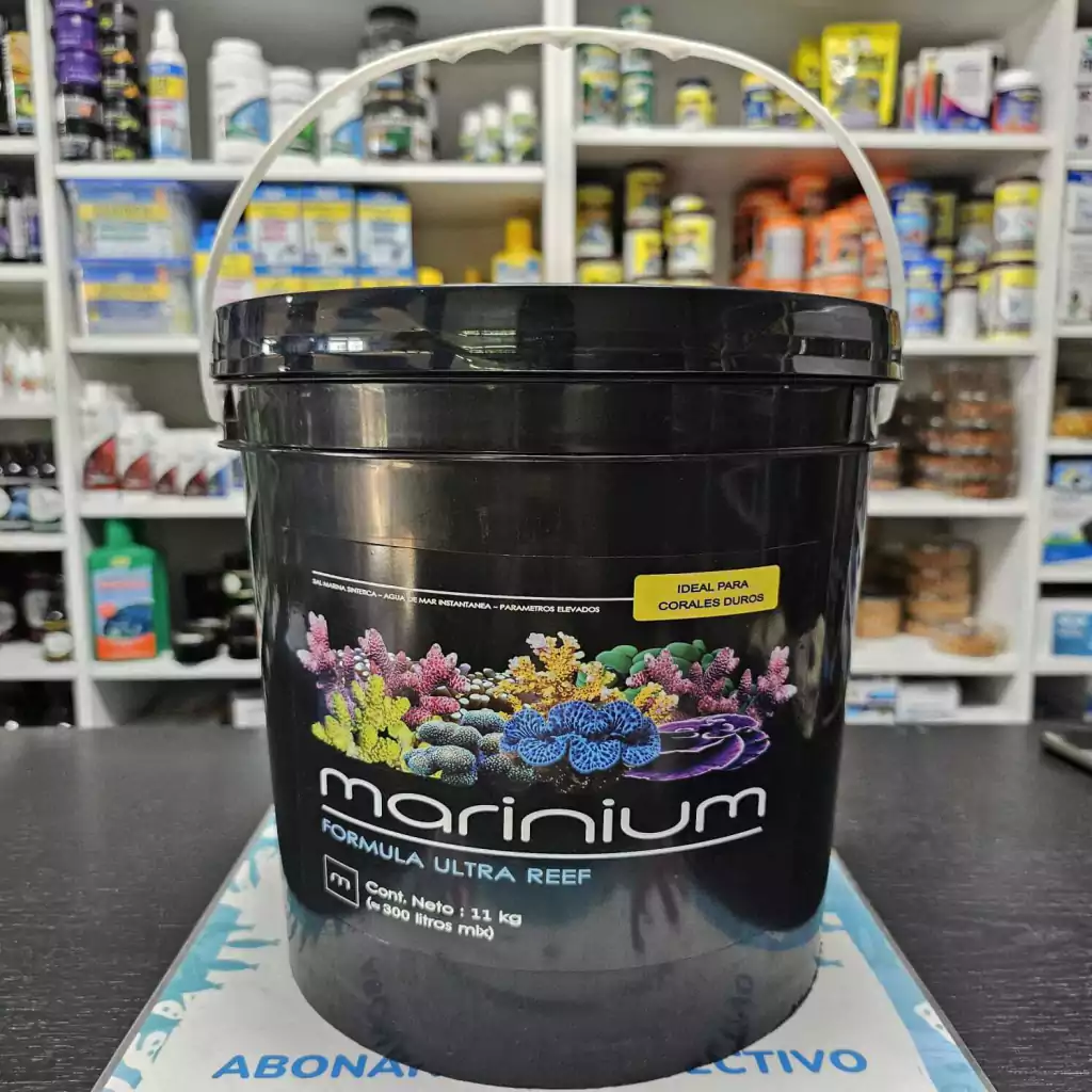 Marinium Formula Utra Reef es una mezcla de sal que contiene todos los elementos essenciales del agua de mar natural y tambien los niveles de calcio, magnesio y carbonatos elevadas para acelerar el crecimeinto de los corales duros, invertebrados calcáreos y las algas coralinas. Por eso, Marinium Formula Ultra Reef es ideal para los acuarios de arrecife que tienen muchos corales de SPS y LPS. Los elementos tazas y varios